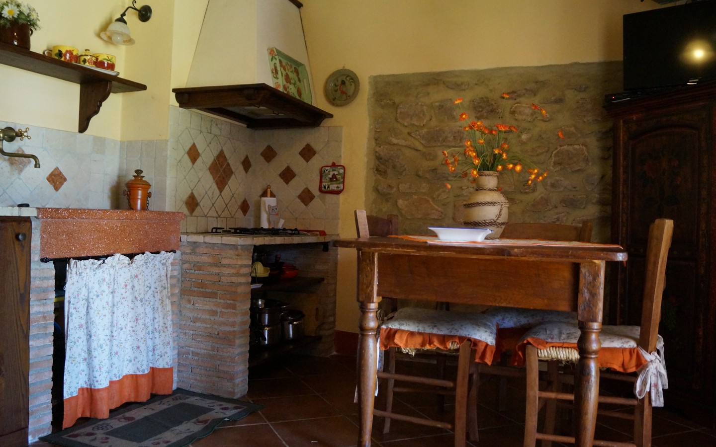 Biancheria con cambio settimanale, aria condizionata, lavanderia, barbecue e uso della piscina opportunamente attrezzata con sdraie lettini e gazebo. Biciclette per passeggiate nella nostra campagna.